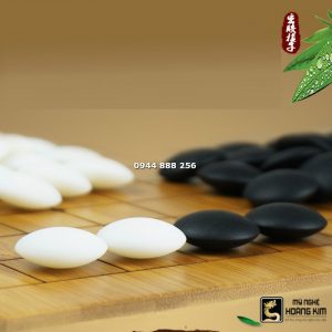 - Quân cờ vây đá cẩm thạch: quân đen khi soi lên ánh sáng mặt trời thì nó chuyển màu xanh, quân trắng sẽ trong trong.