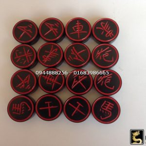 Kiểu dáng: Quân cờ tiện tròn, chữ trên mặt quân cờ được đục chìm tay tinh sảo sắc nét. Đục chữ chìm, tô màu trắng và đỏ rất bắt mắt.