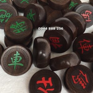 Chất liệu quân cờ tướng gỗ : Gỗ Mun – Kiểu dáng: Chữ đục 1 mặt, đục nổi. cờ được trạm khắc cầu kì.bên trên có đục chữ nỏi màu xanh, đỏ. Viền xúng quanh quân cờ có khắc họa tiết lạ mắt sang trọng